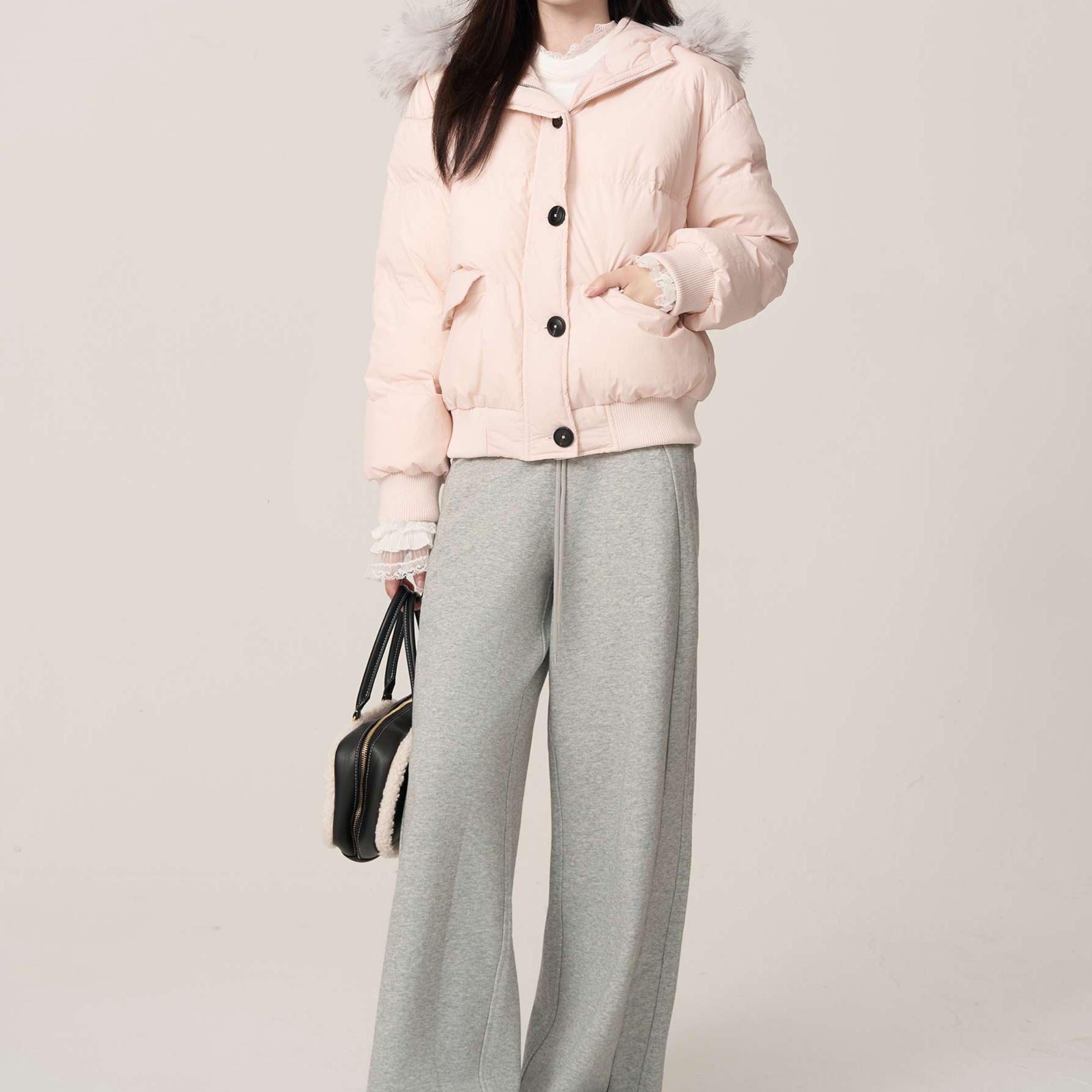 ボリューム感のある中綿素材を使用しながらも、重たく見えない軽やかな着心地で、真冬のデートでも快適に過ごせます。