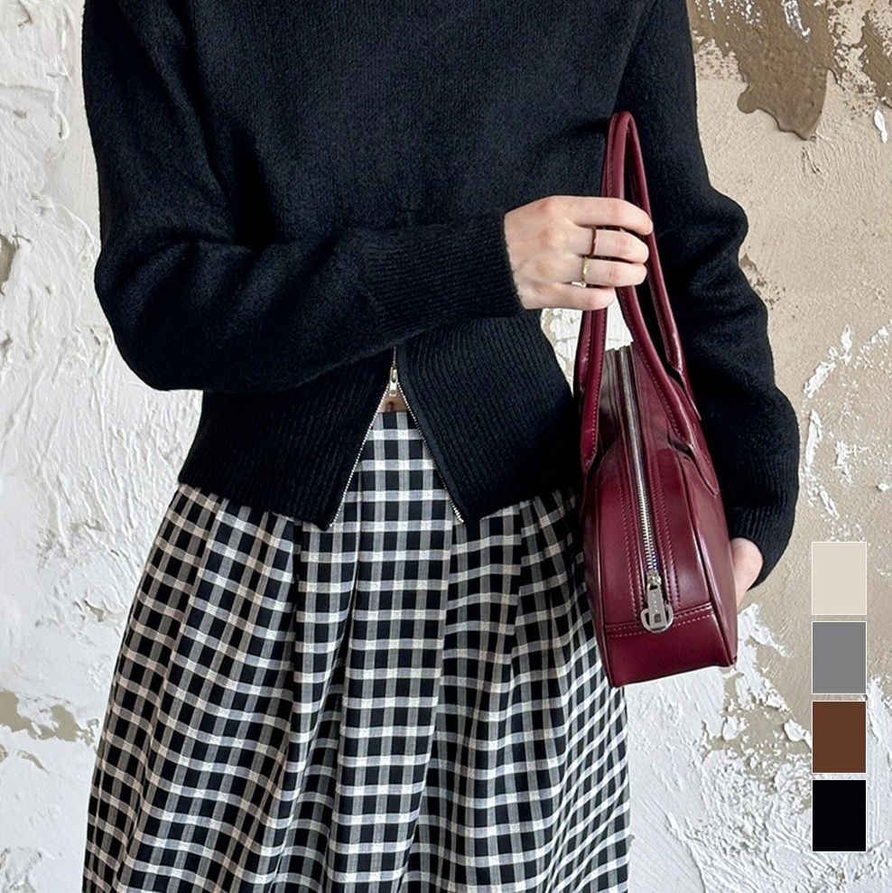 裾部分のジップがアクセントになった大人可愛いニットセーター