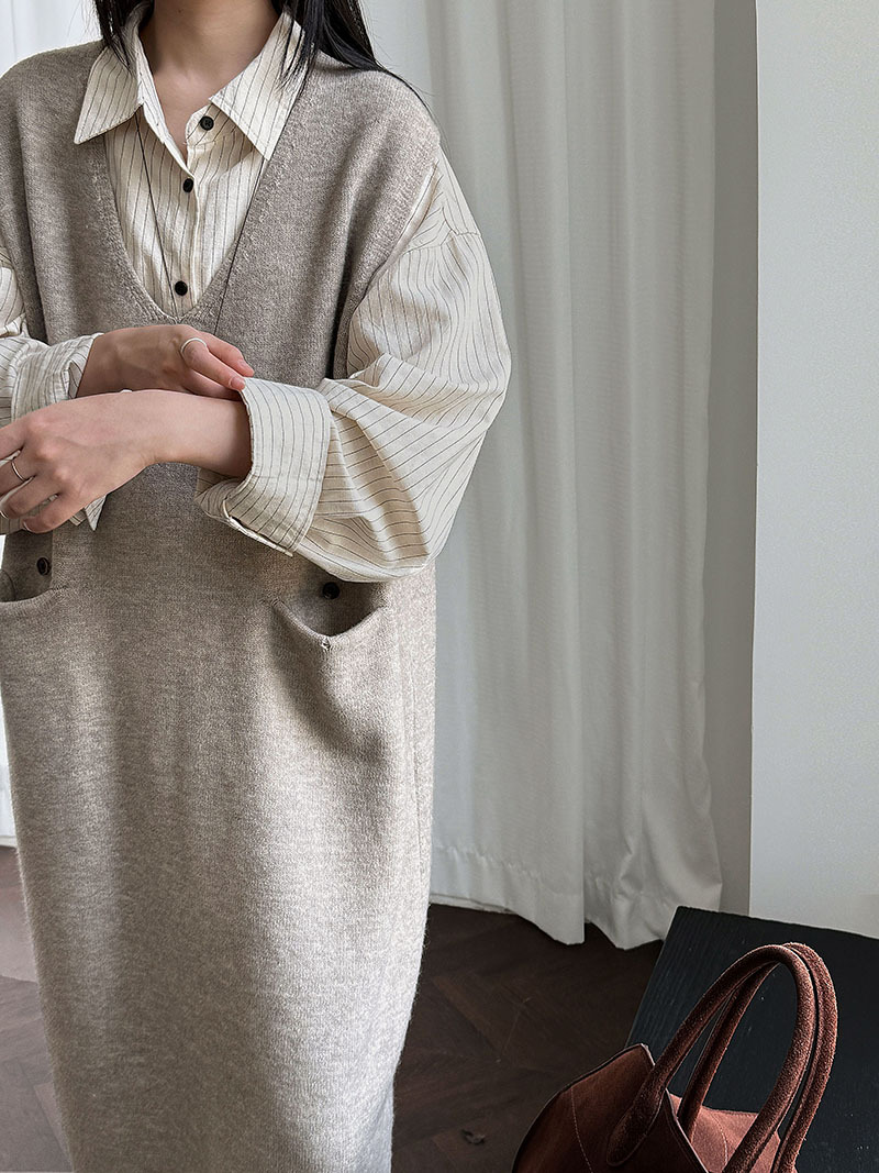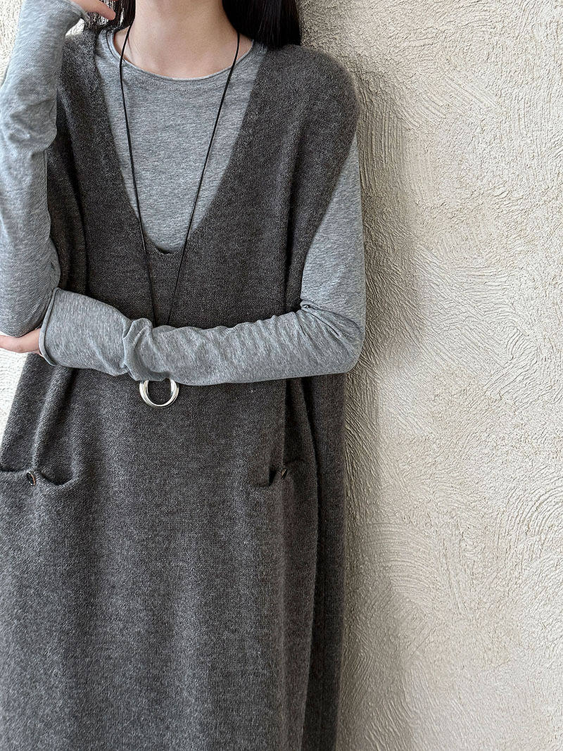 大人可愛い韓国風デザインのニットジャンパースカートです。