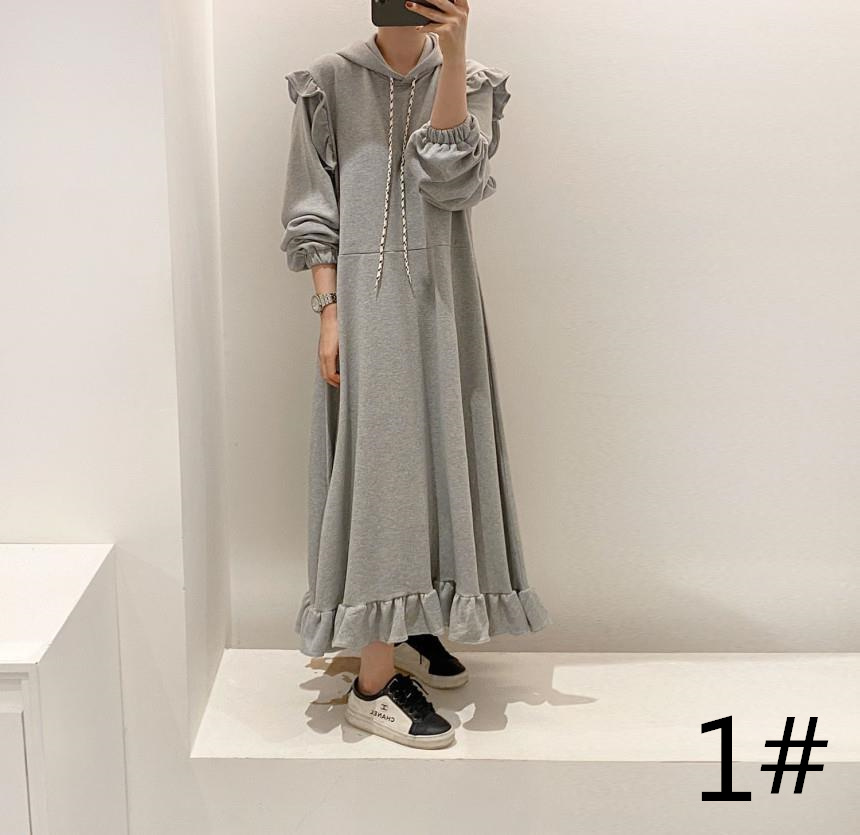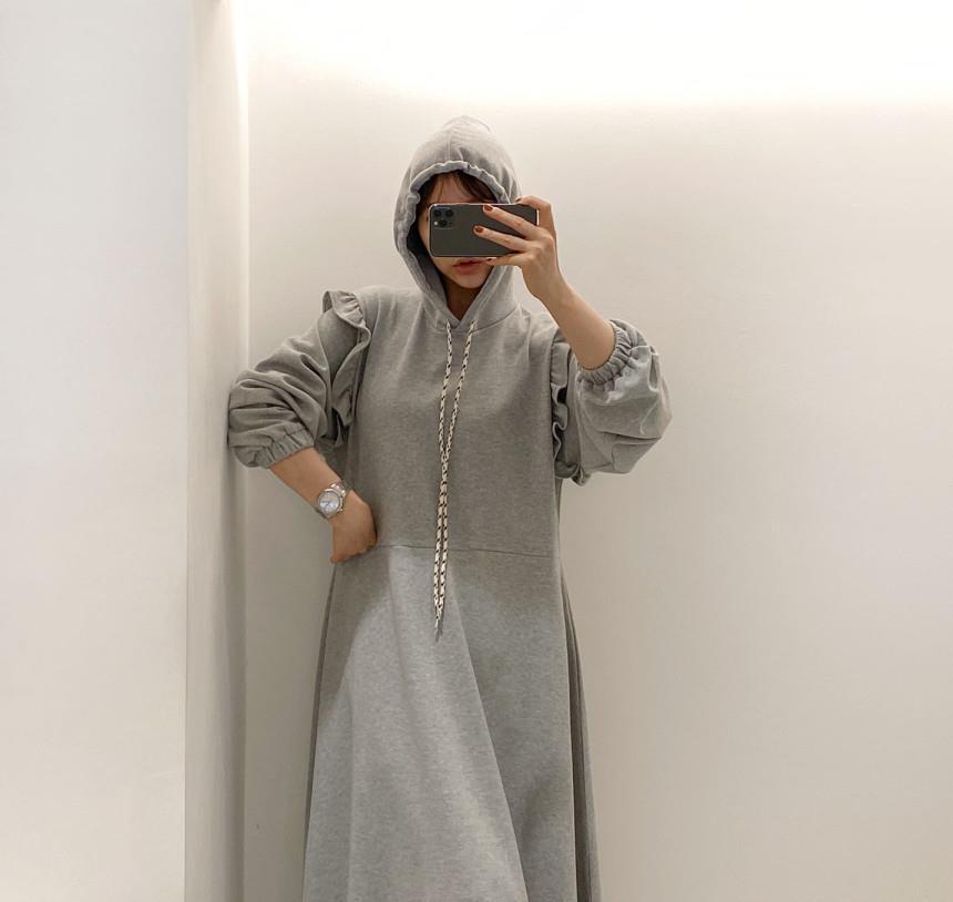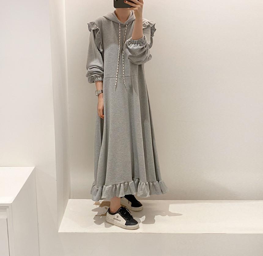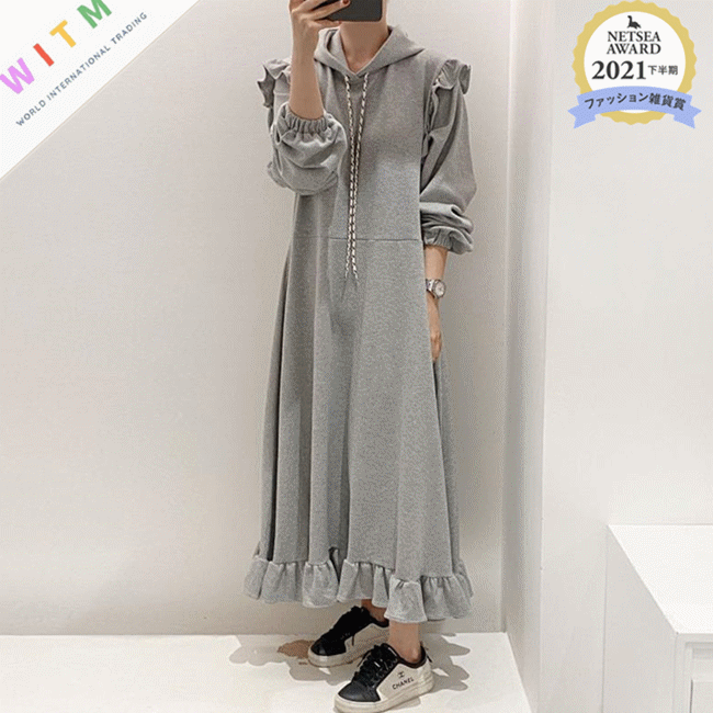 デート服にぴったりのゆったり着られる長袖ワンピース。 フード付きのデザインで可愛らしさを演出し、裾のフリルが女性らしい印象に。 体型カバー効果も抜群で、おうちデートやカジュアルなお出かけに最適です。 ゆるやかなラインが大人の上品さを表現します。