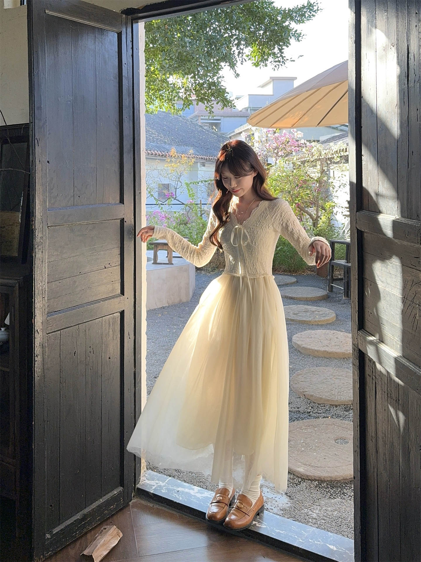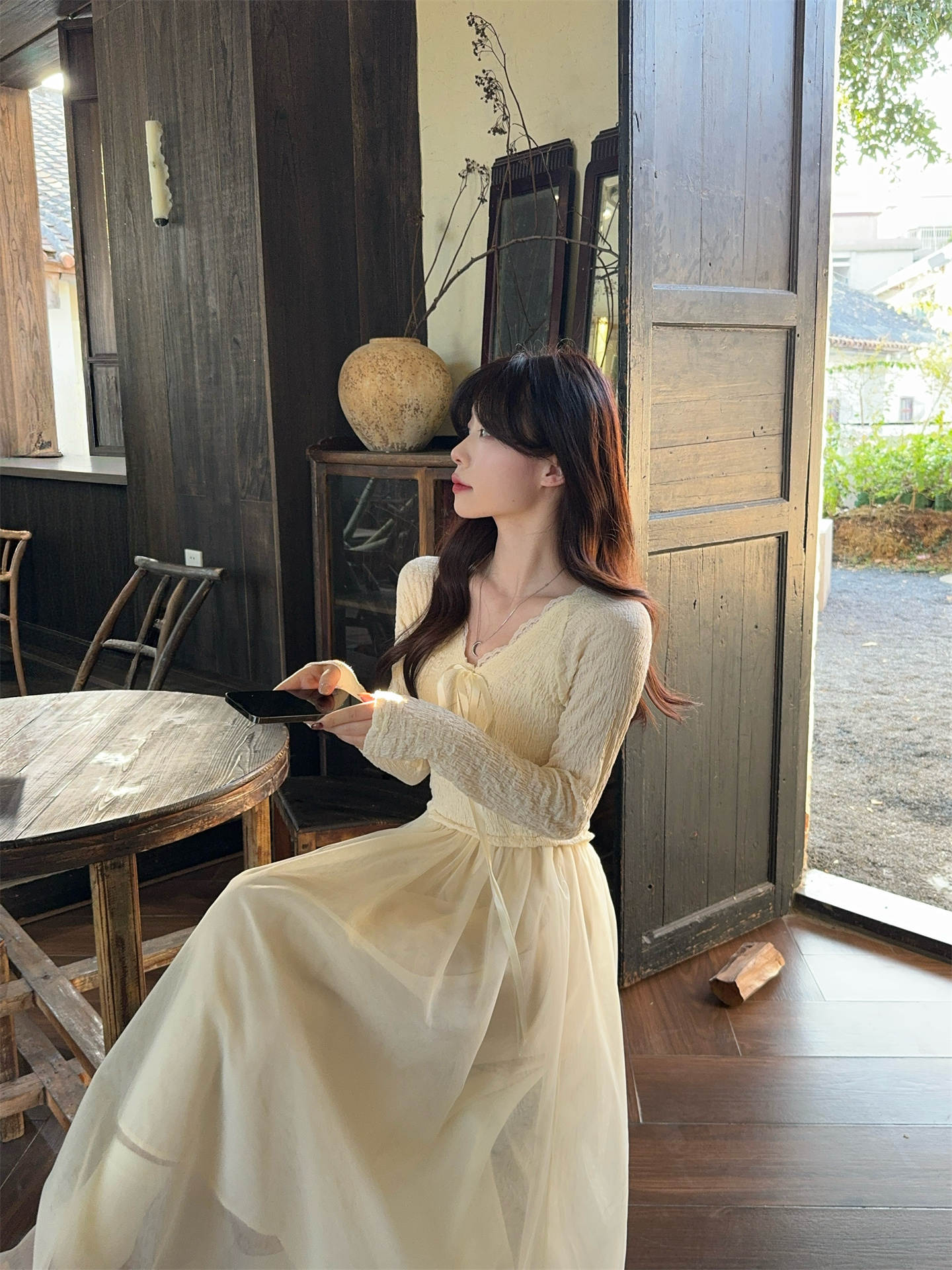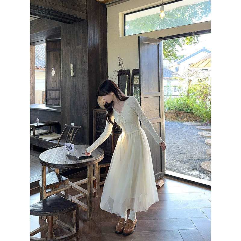 今季必見のおしゃれなレイヤードデザインワンピース。 上品なブイネックラインと透け感のあるチュール素材が女性らしさを演出します。 デート服として特別な日にぴったりの一枚で、優雅で洗練された印象を与えてくれます。
