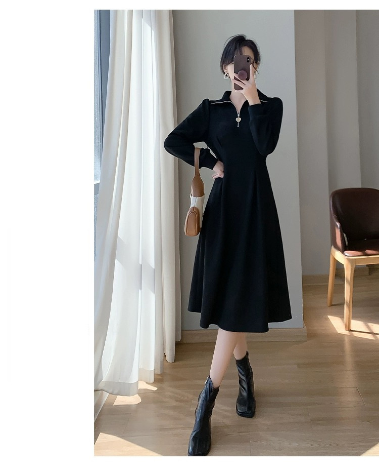 ジップアップの襟元とウエストから広がるゆったりとした裾が上品な印象を演出し、レストランでの食事や特別な日のお出かけにも最適です。