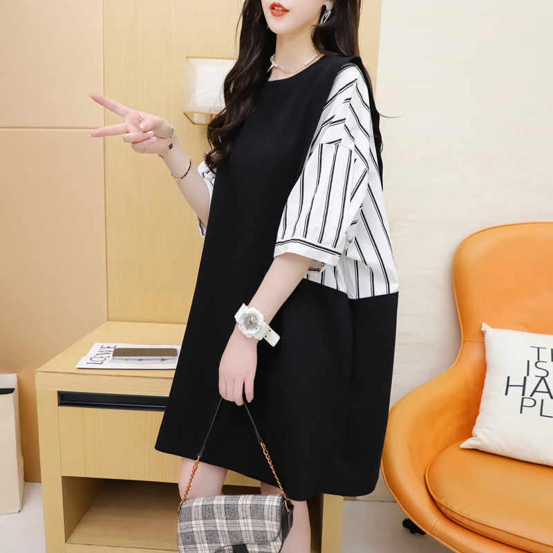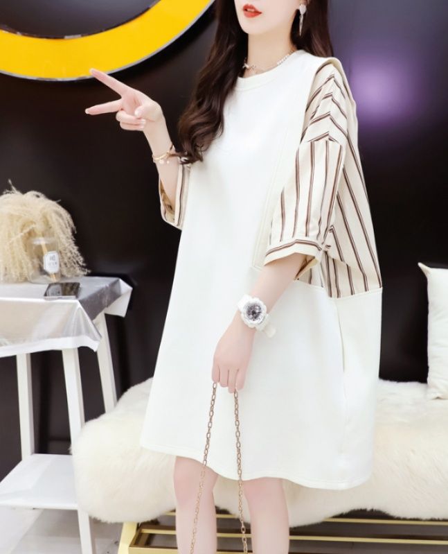 身頃はすっきりとしたシンプルなデザインで、袖部分にストライプ柄の異素材を切り替えたこだわりのディテールが目を引きます。