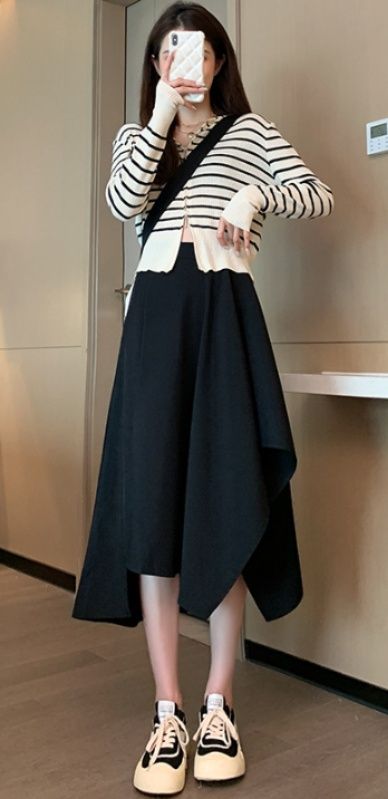 カジュアルなスニーカーとの相性も良く、トップスを選ばず幅広いコーディネートが楽しめるスカートです。