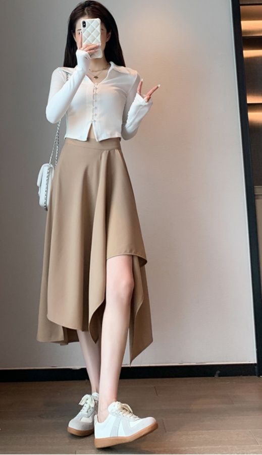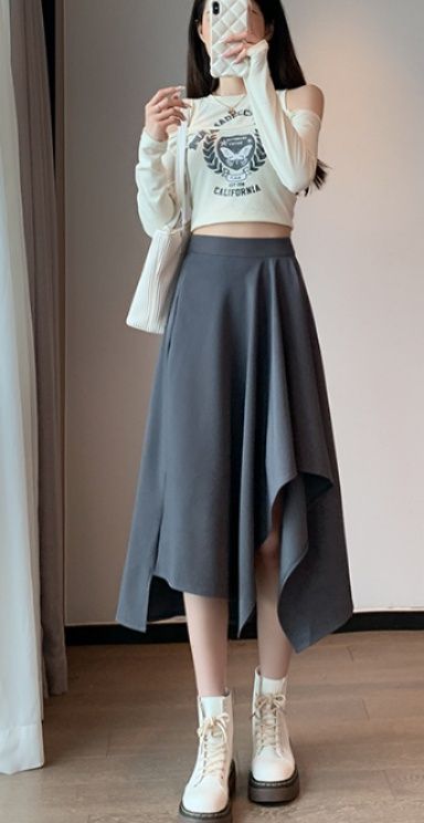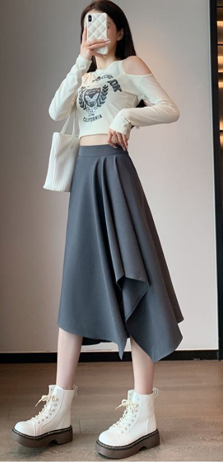 個性的な裾のデザインが目を引く不規則ヘムのスカートです。