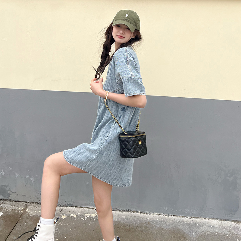カジュアルで上品なデニムシャツワンピースが登場。 前ボタンのデザインがアクセントになり、デート服として幅広いシーンで活躍します。 水族館デートや春のお出かけにぴったりの一枚。 リラックス感がありながらもきちんと見えするミディ丈で、大人可愛いスタイルが完成します。