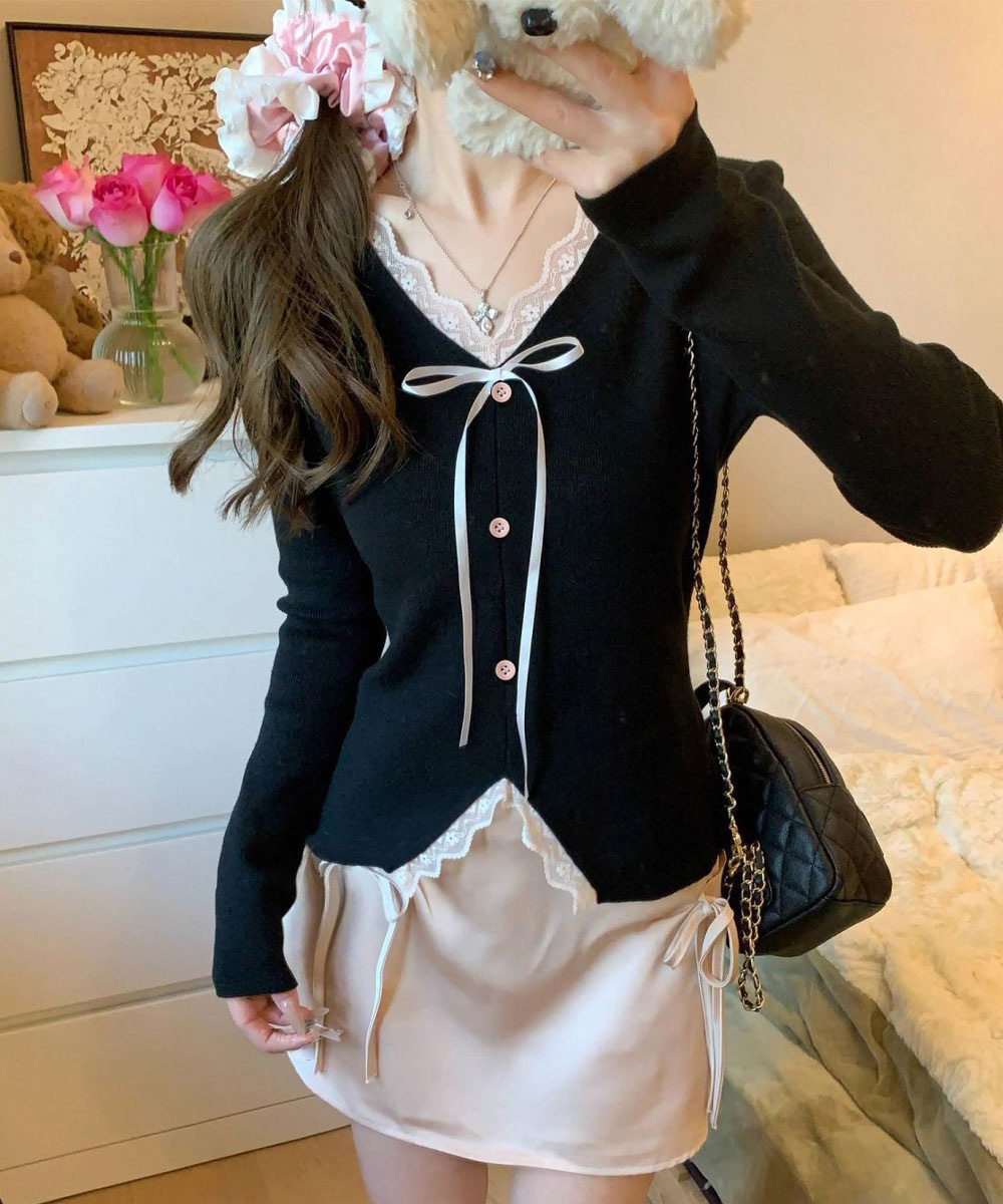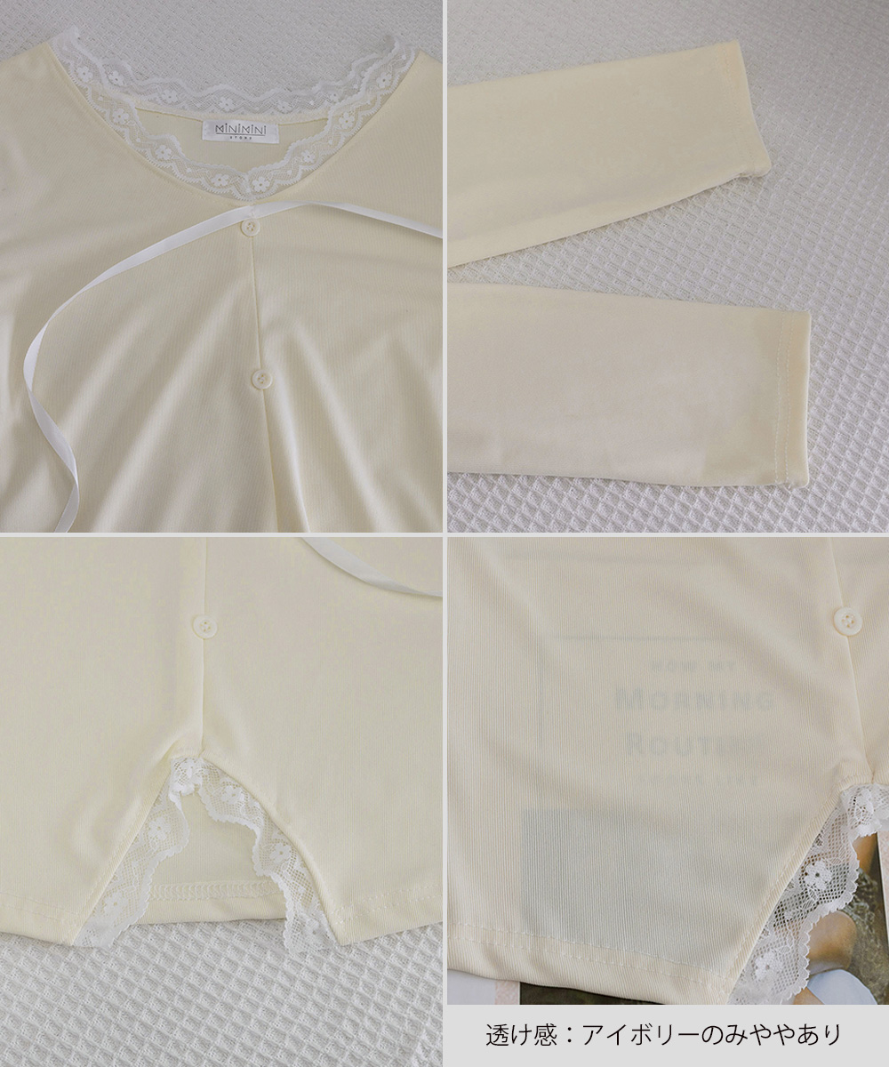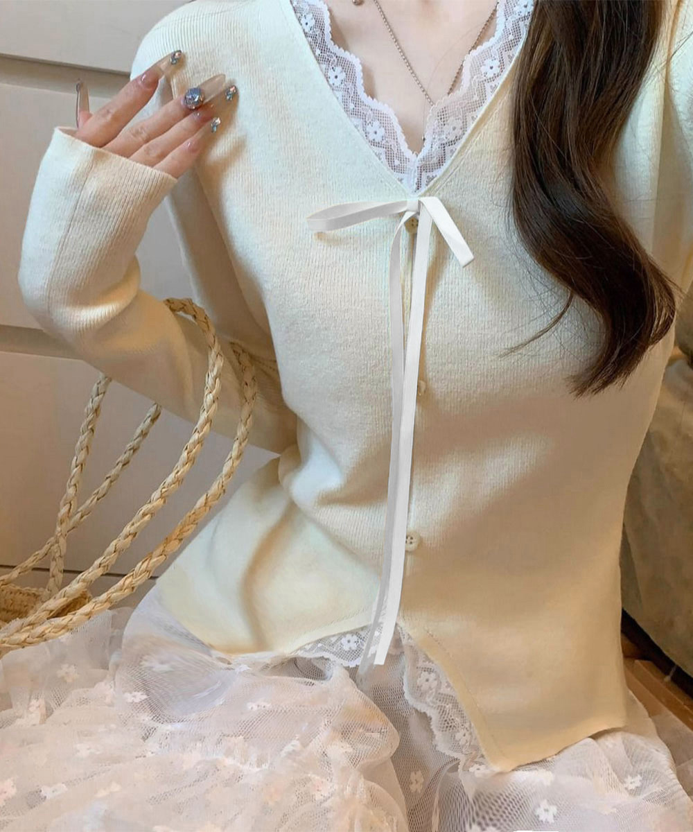 胸元のレースとリボンが上品な甘さをプラスし、デートシーンを華やかに演出。