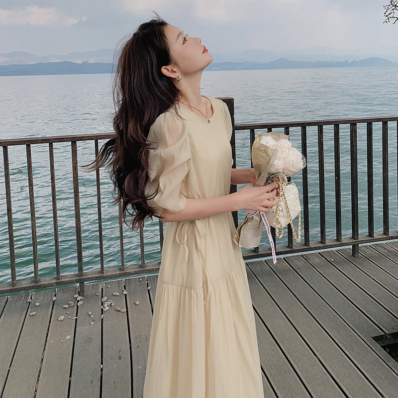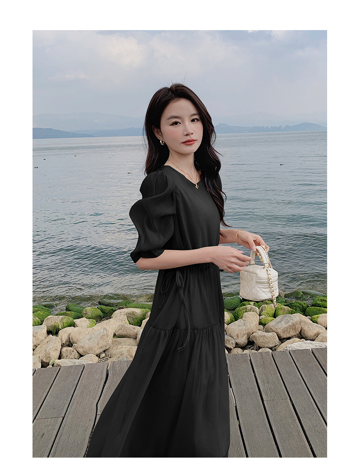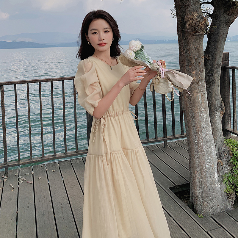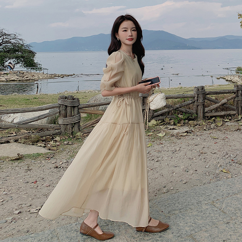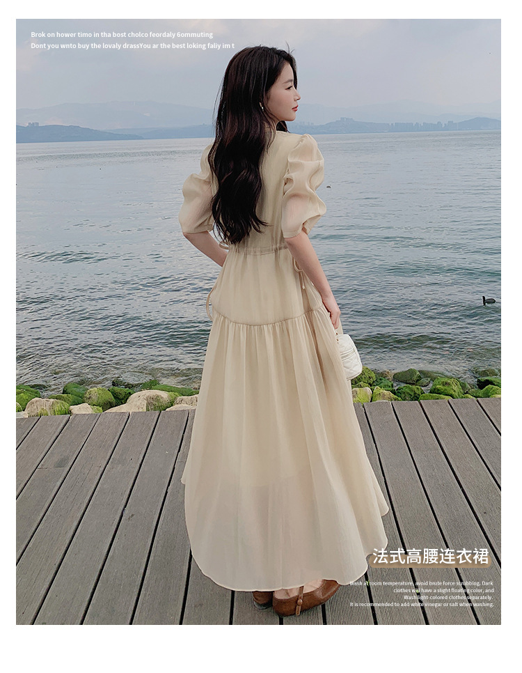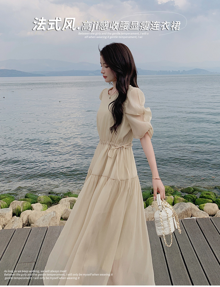 ふんわりとしたボリューム袖が女性らしさを演出するティアードワンピース。 上品なデザインでデート服として幅広いシーンで活躍します。 ウエストの絞りが美しいシルエットを作り、特別な日にぴったりの一枚です。